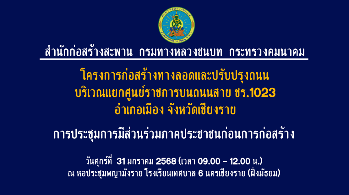โครงการก่อสร้างทางลอดและปรับปรุงถนนบริเวณแยกศูนย์ราชการบนถนนสาย ชร.1023 อำเภอเมือง จังหวัดเชียงราย