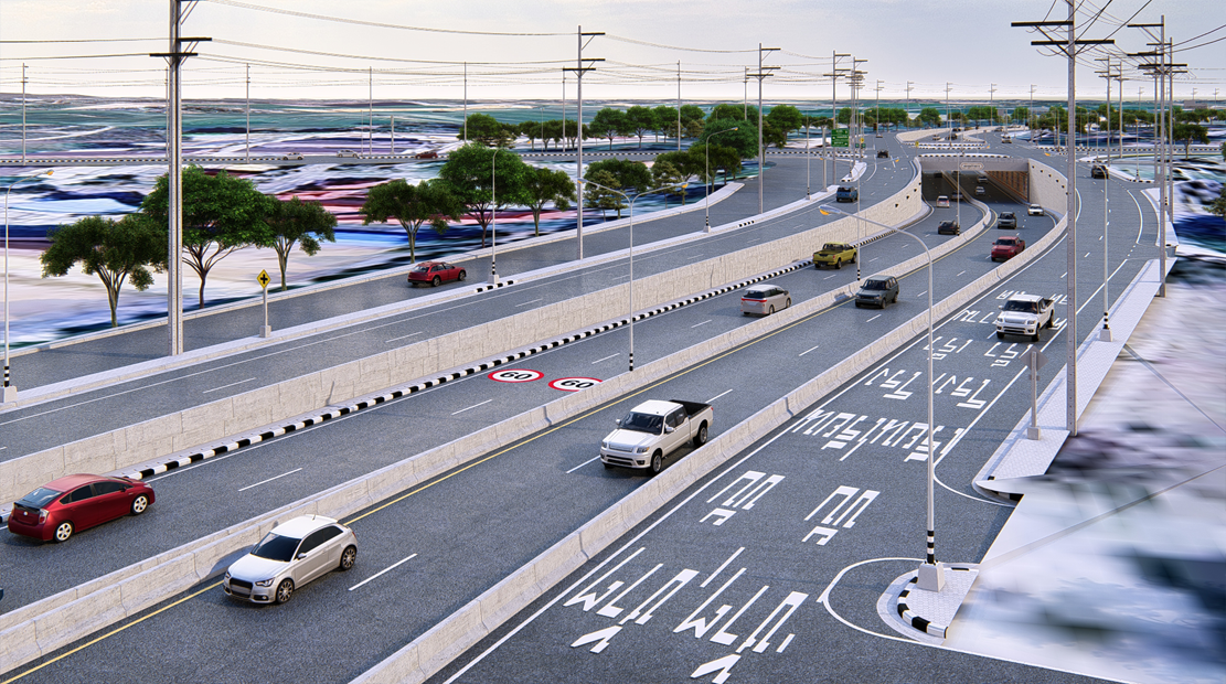 คุณภาพเป็นหนึ่ง คำนึงความปลอดภัย ใส่ใจจราจร เอื้ออาทรปวงประชาชน โครงการก่อสร้างทางลอดและปรับปรุงถนนบริเวณแยกศูนย์ราชการ